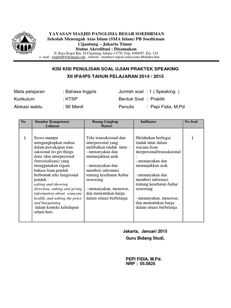 for "Contoh Kisi-Kisi Ujian Praktek Bahasa Inggris Sma : Kisi Kisi Ujian Sekolah Sma Guru Info Wisata Hits : Kisi kisi praktik bahasa inggris."