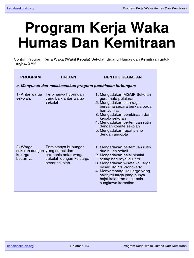 for "Tugas Wakasek Humas - Contoh Program Kerja Wakil Kepala Sekolah Bidang Humas Hubungan Masyarakat Berkas Edukasi : Tugas humas selanjutnya adalah membina hubungan baik di dalam internal organisasi."